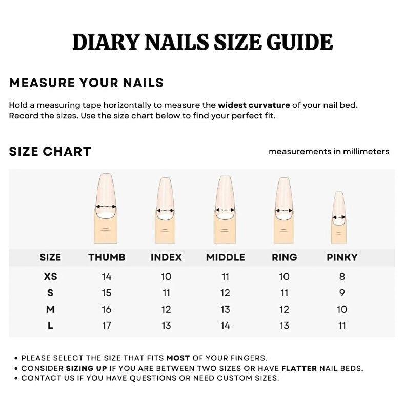 Complimentary nail tool kit includes: 1 Nail Glue, 2 Sheets of Sticky Tabs, 1 Nail File, 1 Cuticle Clipper, 2 Alcohol Wipes, 1 Cuticle Tool.