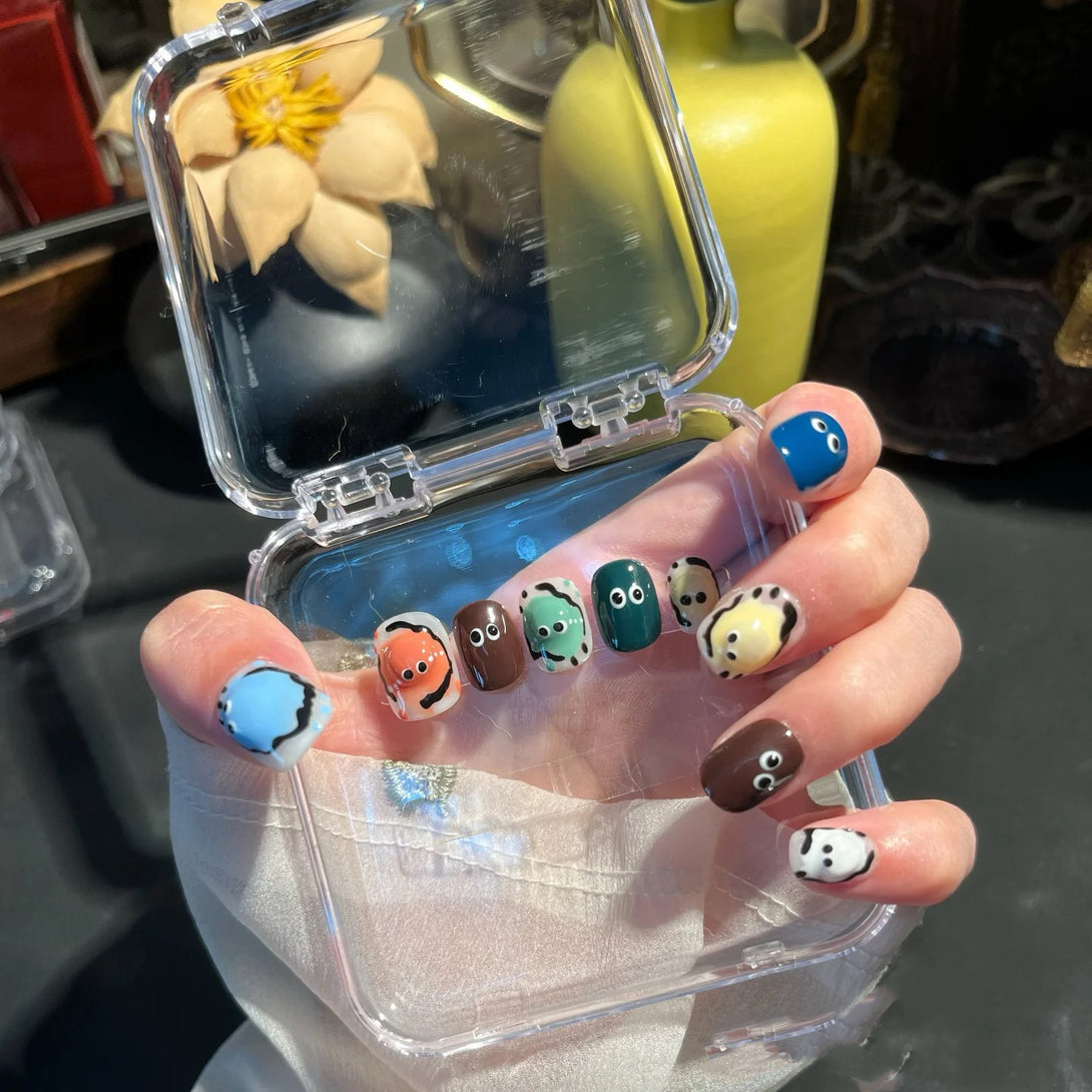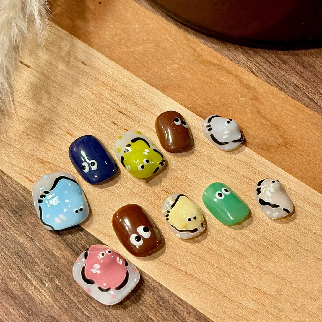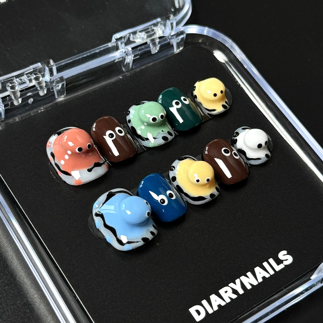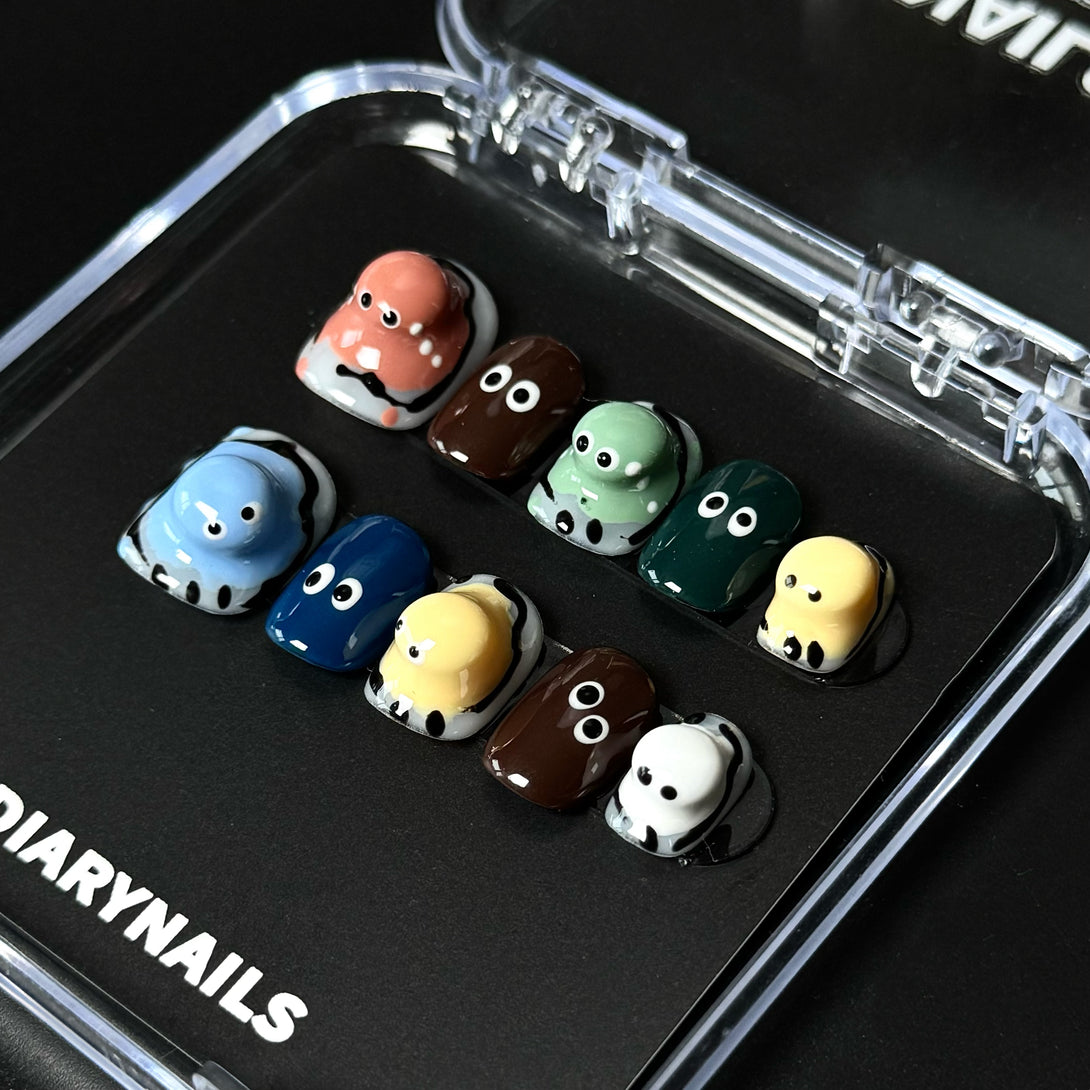 Toto by Diary Nails is a set of press-on nails featuring 3D doll heads and hand-painted cartoon details. Each nail bursts with personality, combining bold colors and whimsical expressions that bring a fun, childlike charm to your fingertips. Perfect for showcasing your quirky side or making a statement at themed events, this set is a true celebration of creativity and joy. Embrace the fun—because your nails should be as expressive as you are!